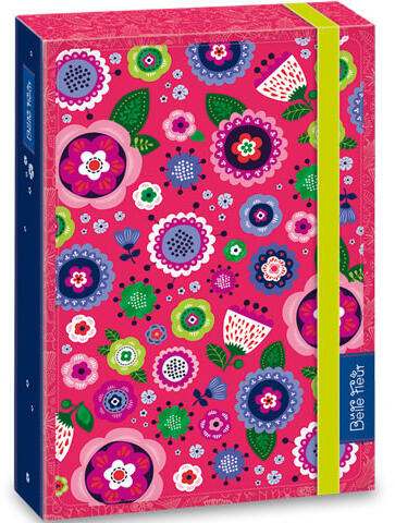 A/4 méretű füzetbox. Külseje matt fóliával és 3D dombor formalakkal. Kemény és tartós kartonból, 7 mm vastag gumipánttal. Belseje fehér színű. Füzetek, iratok tárolására vagy táska helyett is alkalmas. Méret:230x335x45 mm