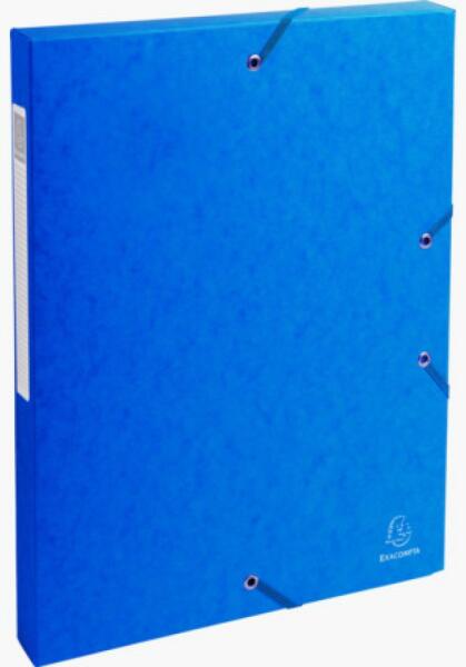 Exacompta füzetbox, A4, 25 mm, 600 g, kék A kiváló minőségű irodaszereket, iratrendezési kellékeket gyártó francia Exacompta fontos küldetése a környezetvédelem. Műanyag termékeik újrahasznosított alapanyagból, papíráruik FSC tanúsítvánnyal ellátott papírokból, kartonokból készülnek. Az FSC jelzés a tudatos erdőgazdálkodásból származó nyersanyagot, fát, papírt jelenti. Ez a gumis füzetbox sokoldalúan használható dokumentumok áttekinthető, akár tematikus tárolására. A gerincen elhelyezett etiketten feltüntethető a tartalom dokumentumok rendszerezésére, gyűjtésére az irodában és otthon tanuláshoz, füzetek, jegyzetek praktikus tárolásához, szállításához.   a box sarkain gumival zárható. A félkemény karton megvédi a tartalmat a sérüléstől, gyűrődéstől. Tulajdonságok méret - A4 a gerinc vastagsága - 2.5 cm anyag - fényes felületű karton, gumi szín - kék