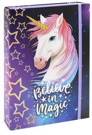 Jumbo A4 formátumú jegyzetfüzet doboz, gumiszalaggal záródik. Előnye a 3 edzett kartonból készült szárny, amely megvédi a notebookokat és könyveket a sérülésektől. Tartós, kiváló minőségű anyag. A füzetek és könyvek tárolására szolgáló minden iskolás felszerelés elengedhetetlen része.