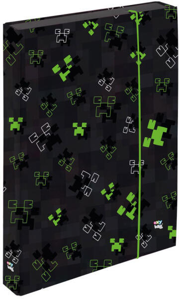 Minecraft mintás füzetbox A/4, jumbo, OXY NEXT Green Cube, fekete-zöld. Méret: 245x320x45mm. Ideális füzetek, papírok, egyéb iratok tárolására. Gumis záródással.