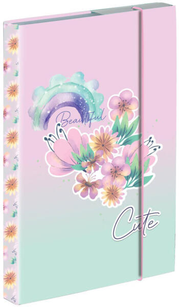 Virágos füzetbox A/5, rózsaszín-zöld. Méret: 16,8x23x3cm. Ideális füzetek, papírok, egyéb iratok tárolására. Gumis záródással.